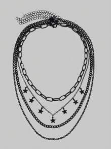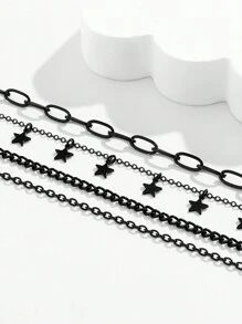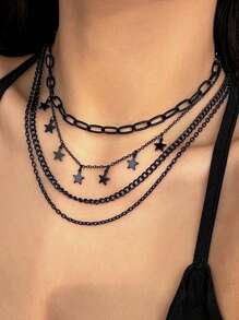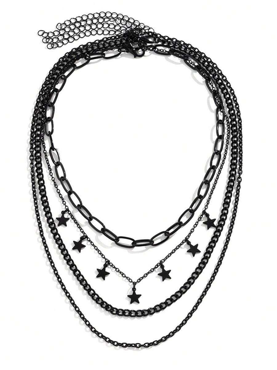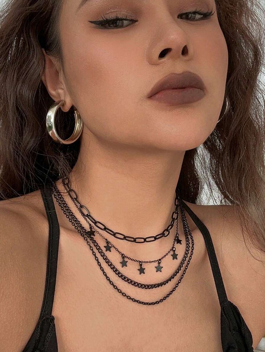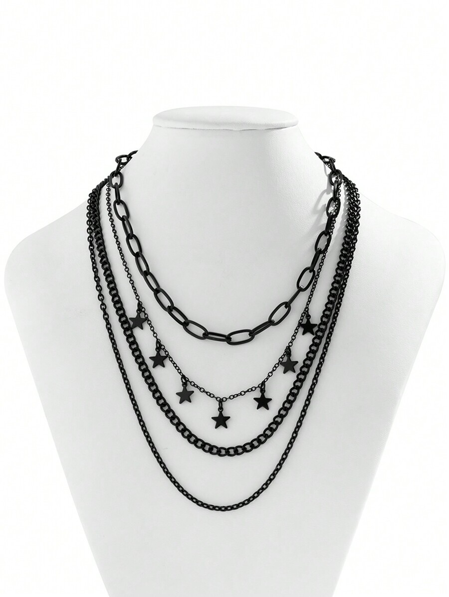 Grunge Punk 4pcs Women's Chic Dark Star Tassel Necklace Set
