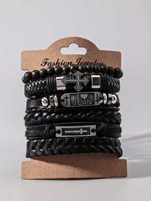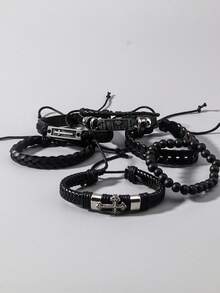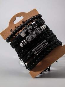 Grunge Punk 5pcs/Set Retro Hippie Style Pentagram Beaded Wing PU Leather Bracelets For Women, Suitable For Daily Wear And Festivals
