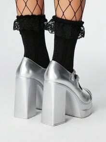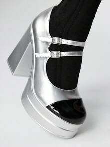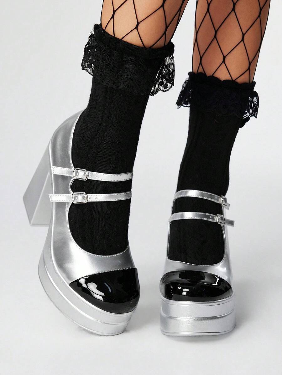 Grunge Punk CUCCOO Fashion Colorblock Waterproof Platform High Heels