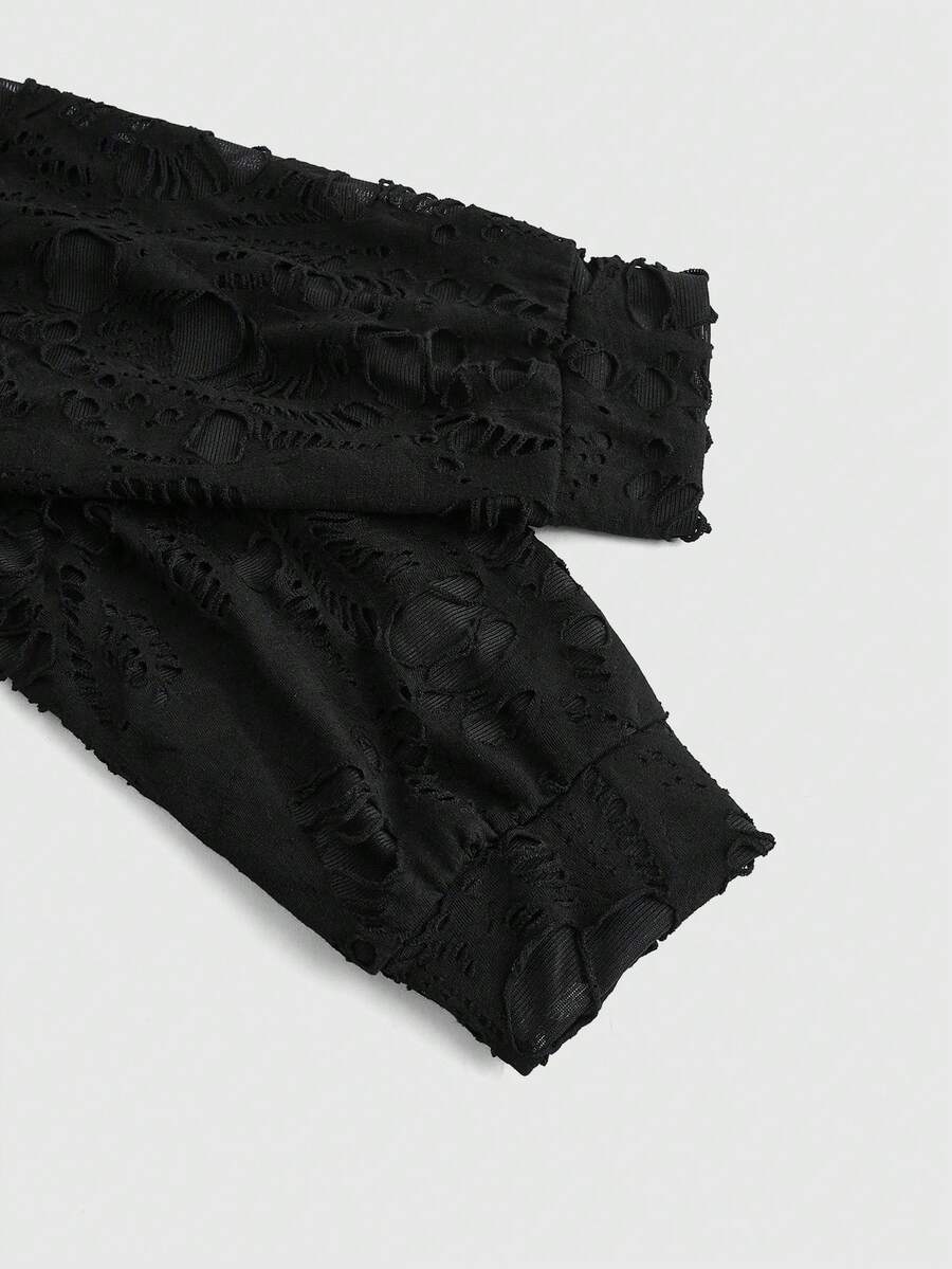 Grunge Punk Casual Loose Distressed Semi-Sheer Hooded Pullover Sweatshirt, Vintage Washed Look For Women