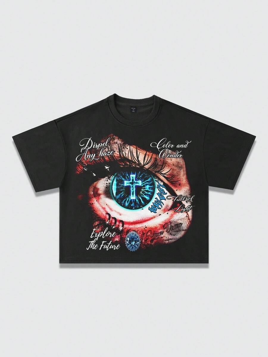 Grunge Punk Casual Personalized Fashion Eye Printed Men's Round Neck Short Sleeve T-Shirt
