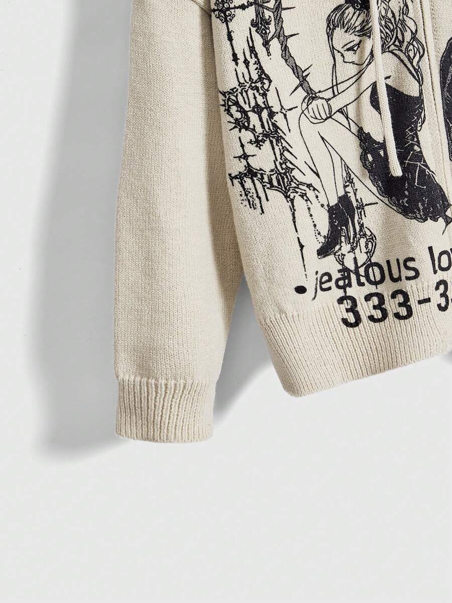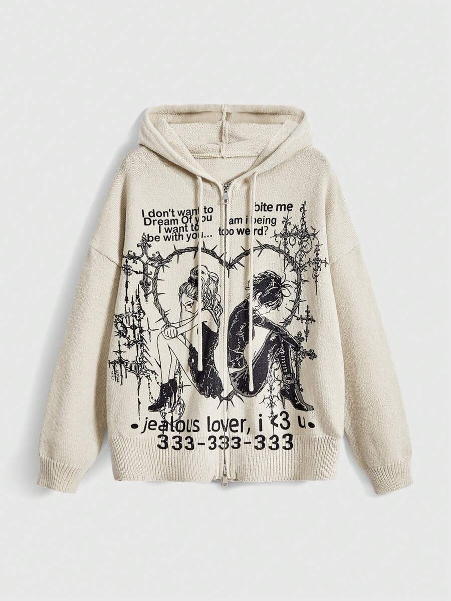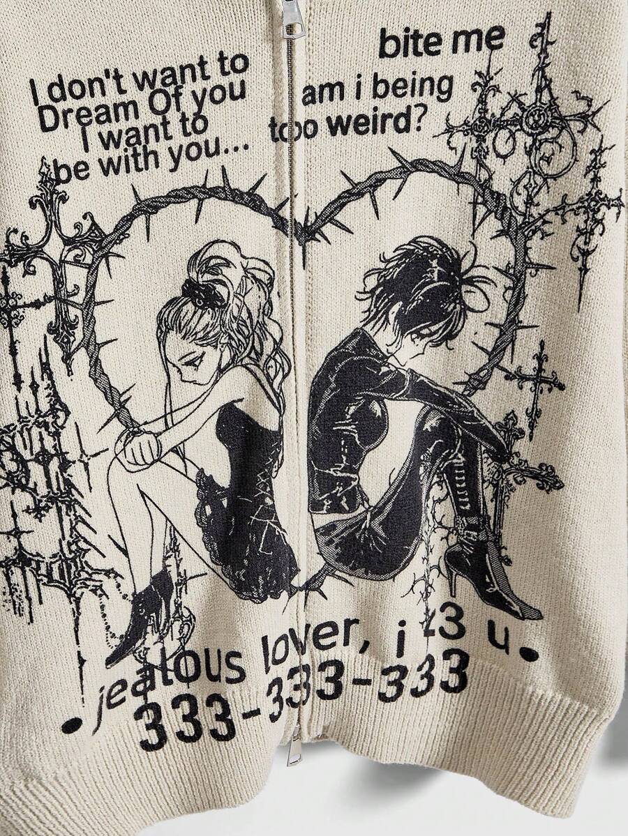 Grunge Punk Cyber Y2K Punk Babe Cyberpunk Symbol Anime Girl Print Loose Cardigan For Women