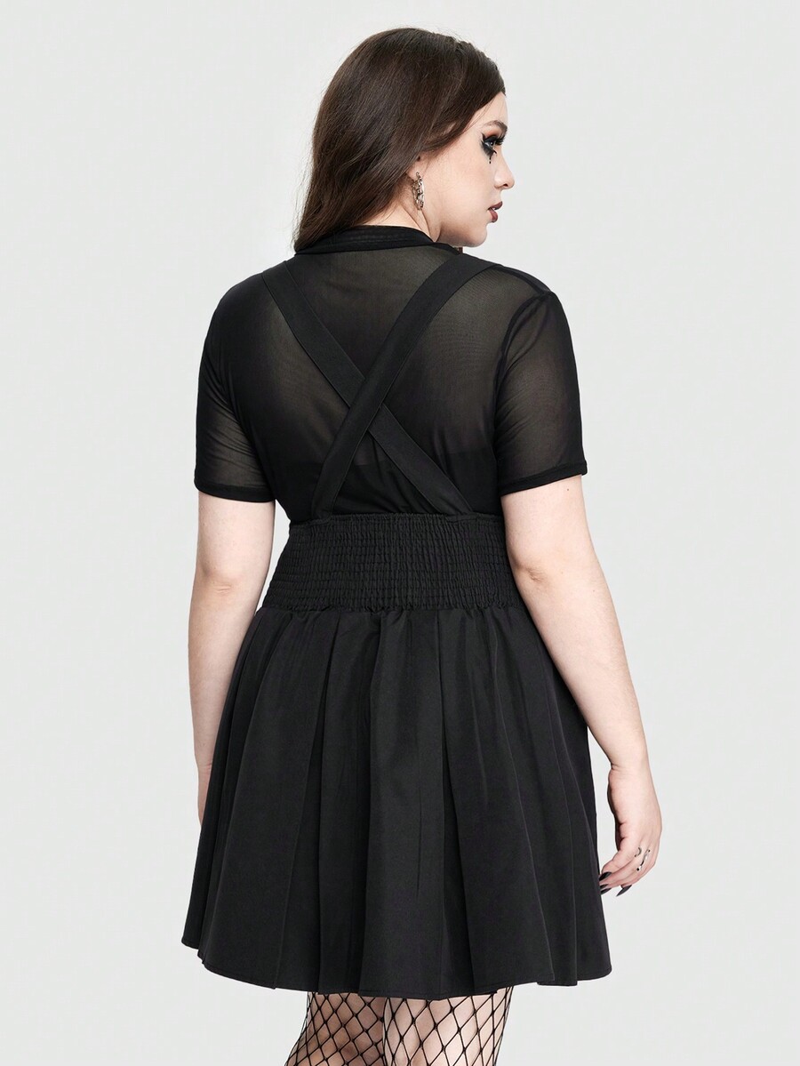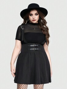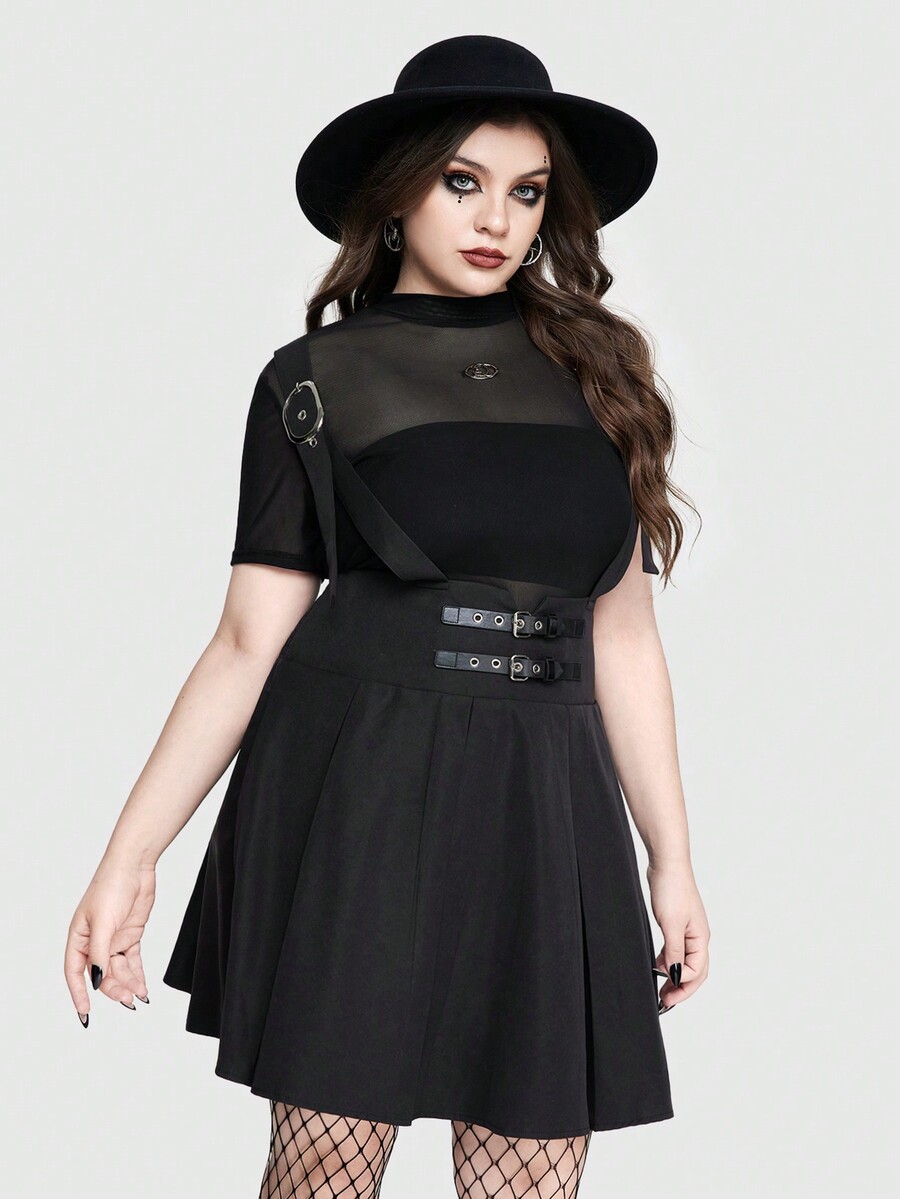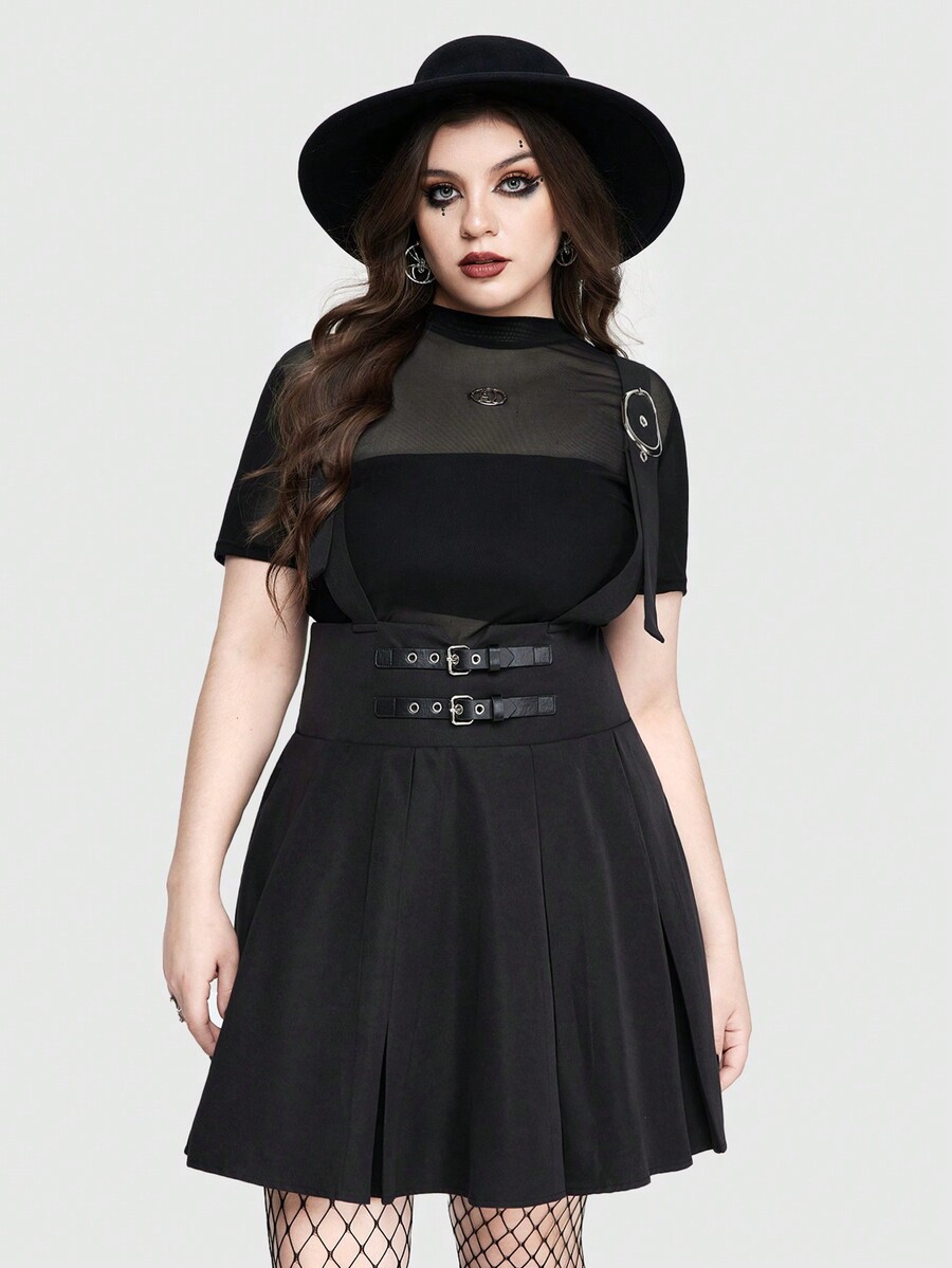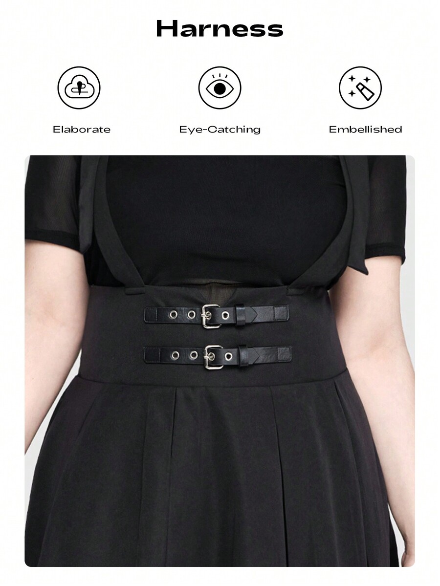 Grunge Punk Daily Punk Style Waist Belt Buckle Decoration Plus Size Suspender Skirt With Pleats, School