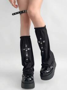 Grunge Punk Dark Gothic Cross Metal Eyelet Mid-Calf Leg Warmers Y2K Fashion Versatile Leg Warmers, Suitable For Vacation, Parties, Shopping, Photography, Halloween