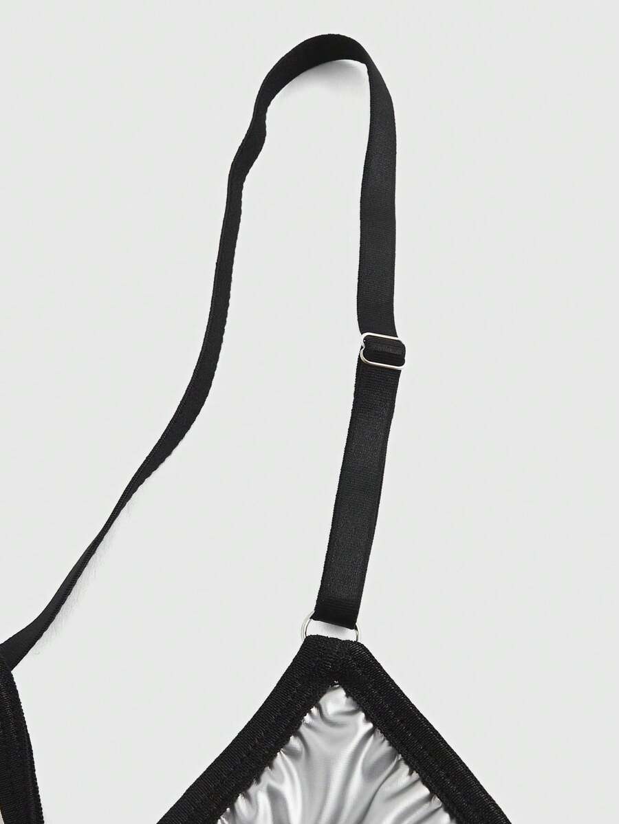 Grunge Punk Dark Punk Style Pu Fabric Star Print Bralette Top With Studded Strap And Triangle Cup