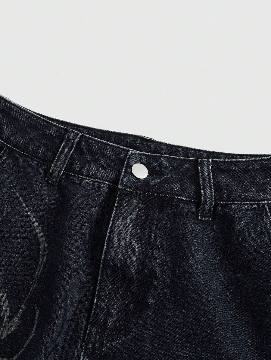 Grunge Punk Denim Loose Cargo Pants With Spider & Centipede Prints