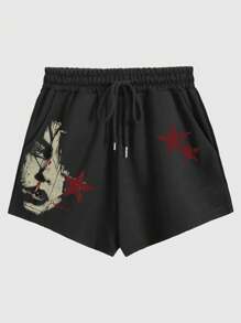 Grunge Punk Edgy Face Print Casual Punk Academy Shorts
