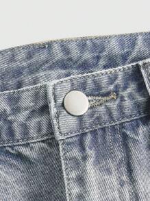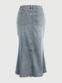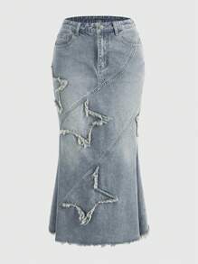 Grunge Punk Elegant And Casual Vintage Star Embellished Washed Denim Mermaid Skirt With Slant Cut And Hip Wrapped Design