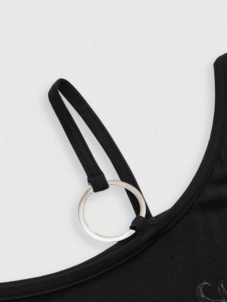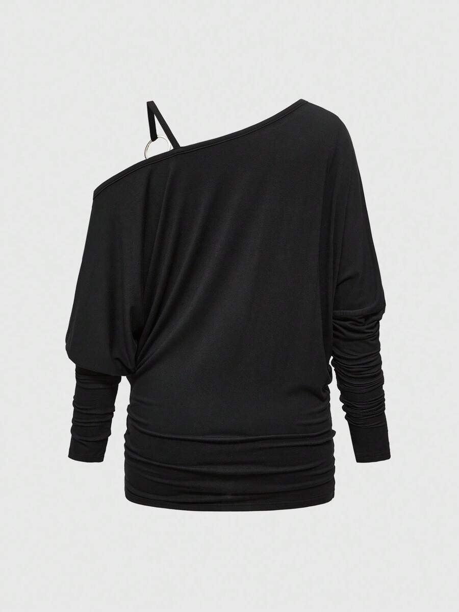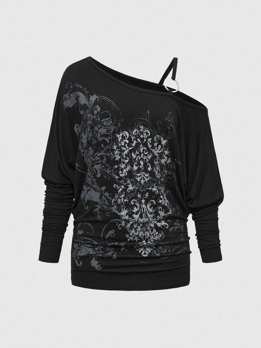 Grunge Punk Elegant Cute Tropical Purple Vine Cross Shoulder Bat Wing Elastic Ruched Women T-Shirt