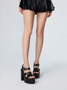 Grunge Punk Elegant Fashion Casual Black Round Toe Chunky Heel Pumps, Punk Goth Roman Gladiator Sandals Suitable For Party, Daily Wear, Evening Dress, Height Increase And Leg Elongation, Comfortable Versatile Women High Heels