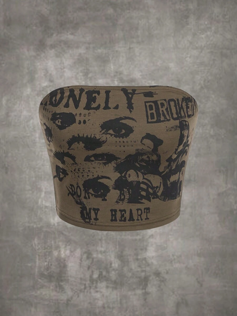 Grunge Punk Eye & Letter Graphic Tube Top