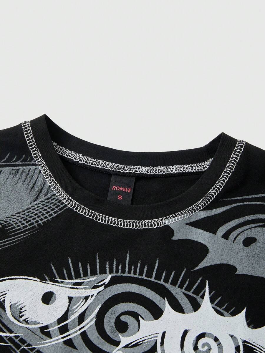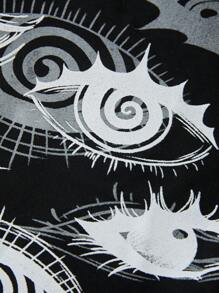 Grunge Punk Eye Printed T-Shirt With Exposed Seams
