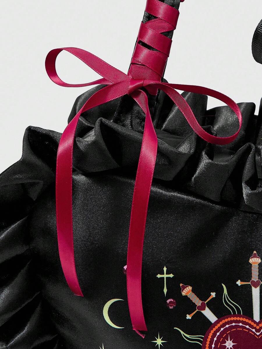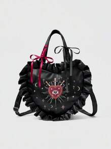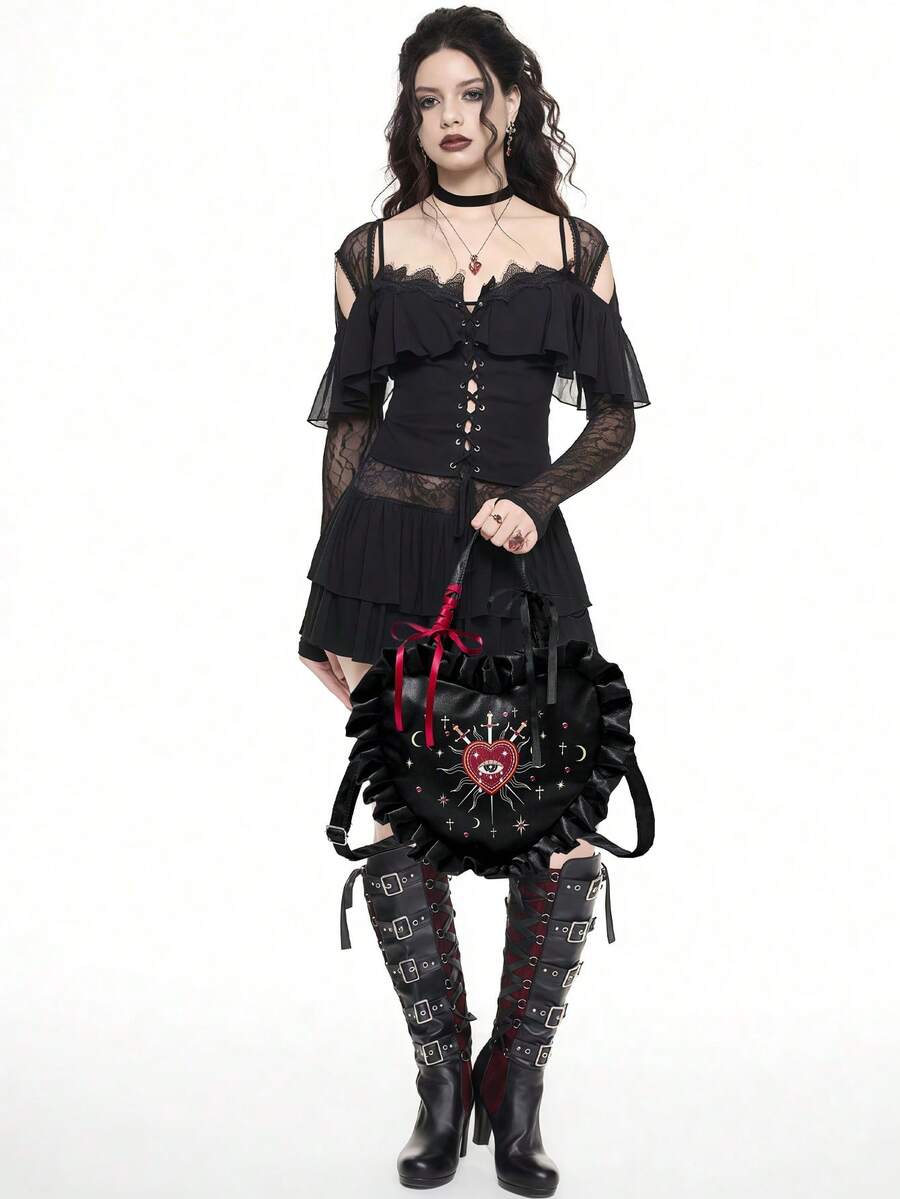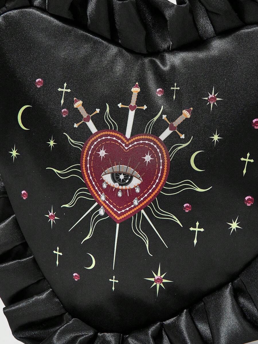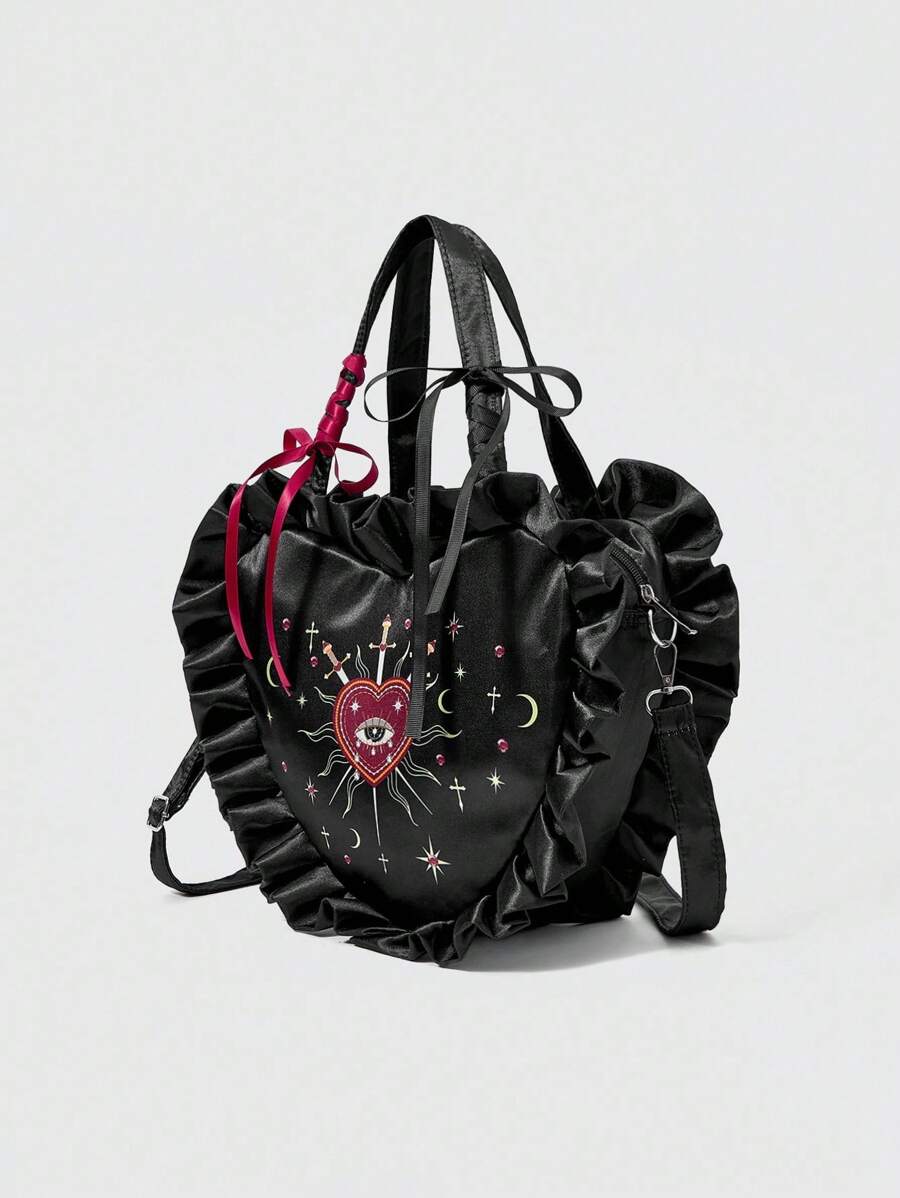 Grunge Punk Eyeball, Heart, Star & Gem Pattern Heart Shaped Handbag, Lace Decor, Large Capacity Tote Bag, For Women, Shoulder Bag, Style No. 1337053