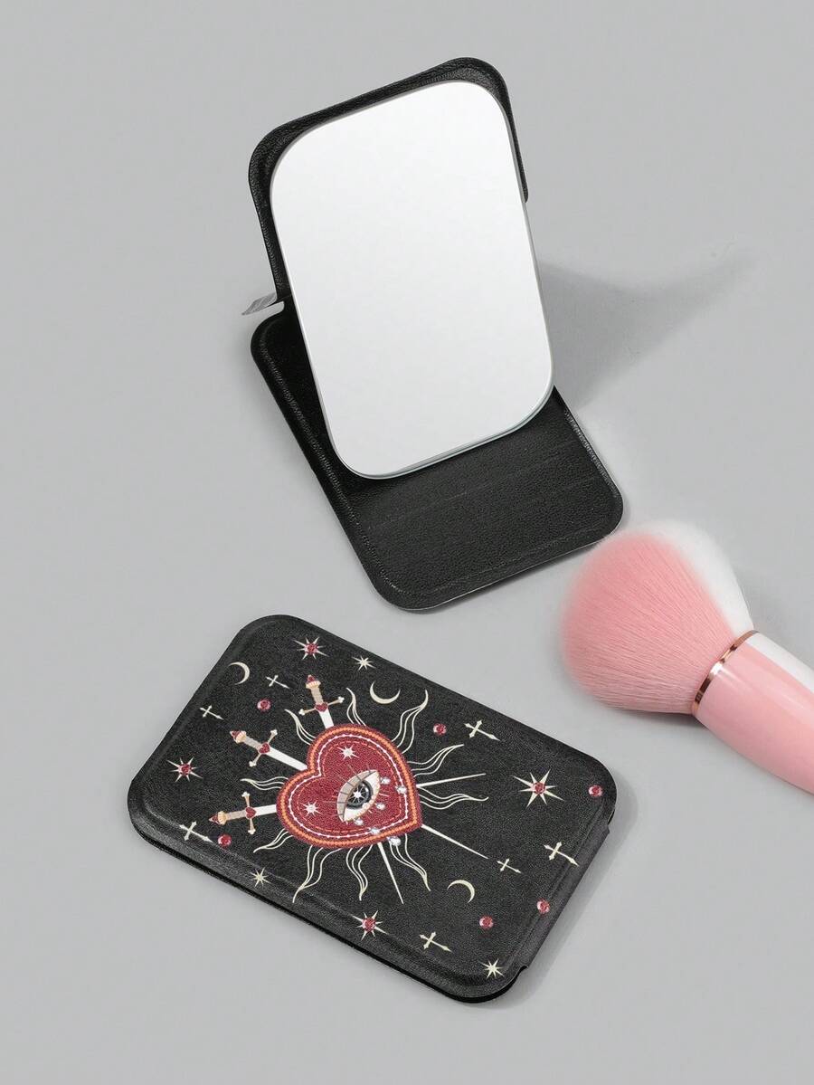 Grunge Punk Gothic Dark Style Foldable Portable Vanity Mirror, Suitable For Travel And Gift-Giving, Halloween