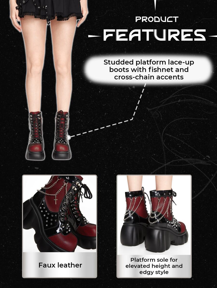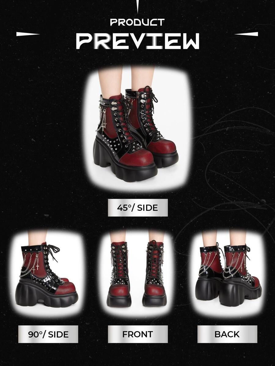 Grunge Punk Gothic Punk Chain Spiked Platform Short Boots For Halloween Fall For Christmas And New Year Holiday Valentines Spring Shoes Y2K 2000s Style