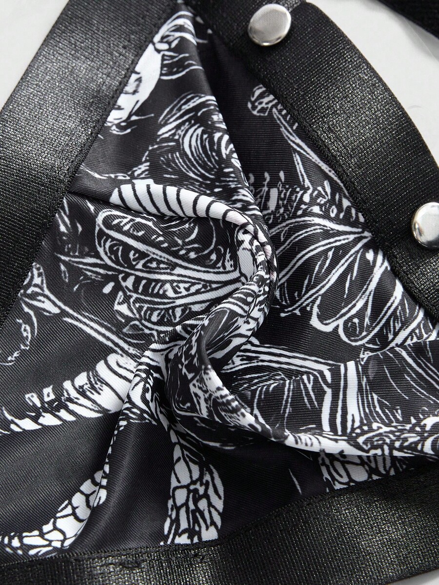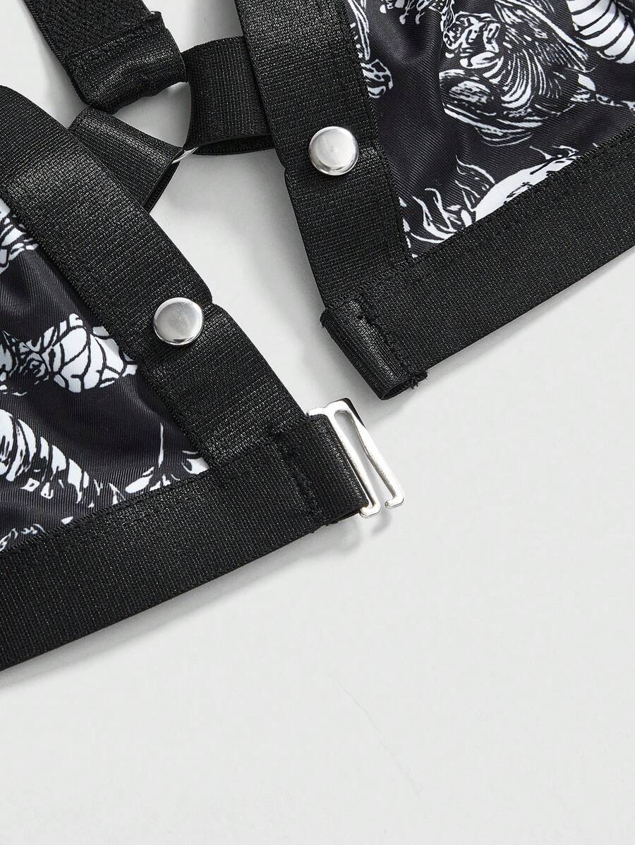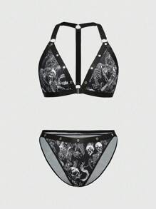 Grunge Punk Gothic Punk Skull Snake Pattern Stud Triangle Cup Triangle Panty Lingerie Set
