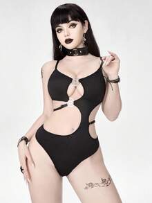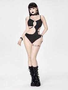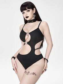 Grunge Punk Gothic Style Metallic Pentagram Seamless Bodysuit, Sexy & Wireless