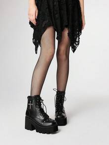 Grunge Punk Gothic Style Square Toe Chunky Heel Punk Boots, PU Leather Black High Heel Boots Suitable For Party, Daily Wear, Evening Dress, Height Increasing And Leg Lengthening, Halloween