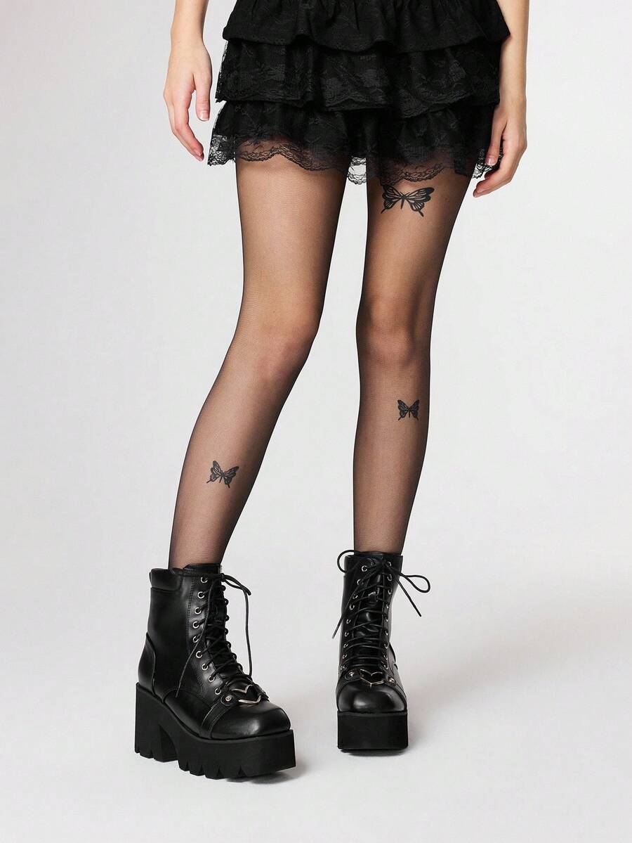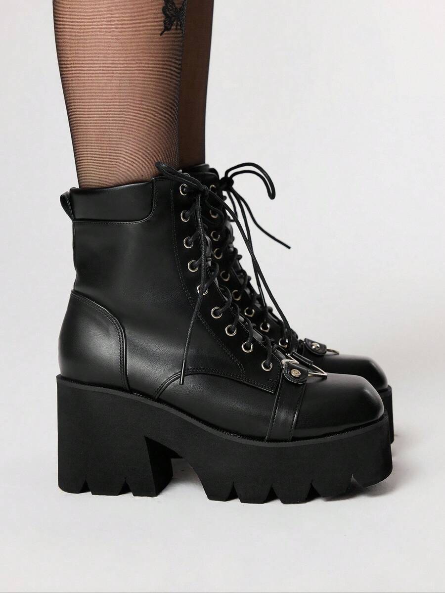 Grunge Punk Gothic Style Square Toe Chunky Heel Punk Boots, PU Leather Black High Heel Boots Suitable For Party, Daily Wear, Evening Dress, Height Increasing And Leg Lengthening, Halloween