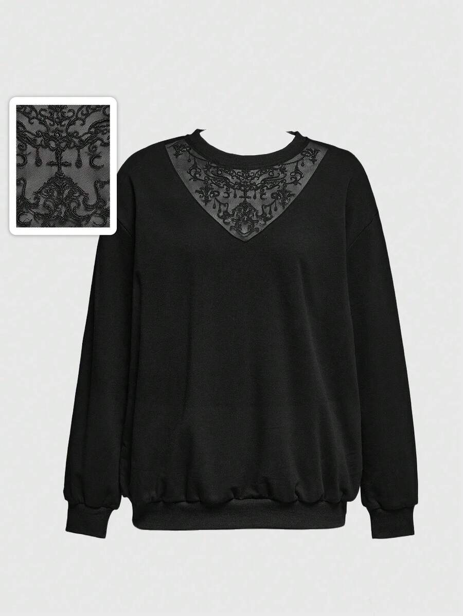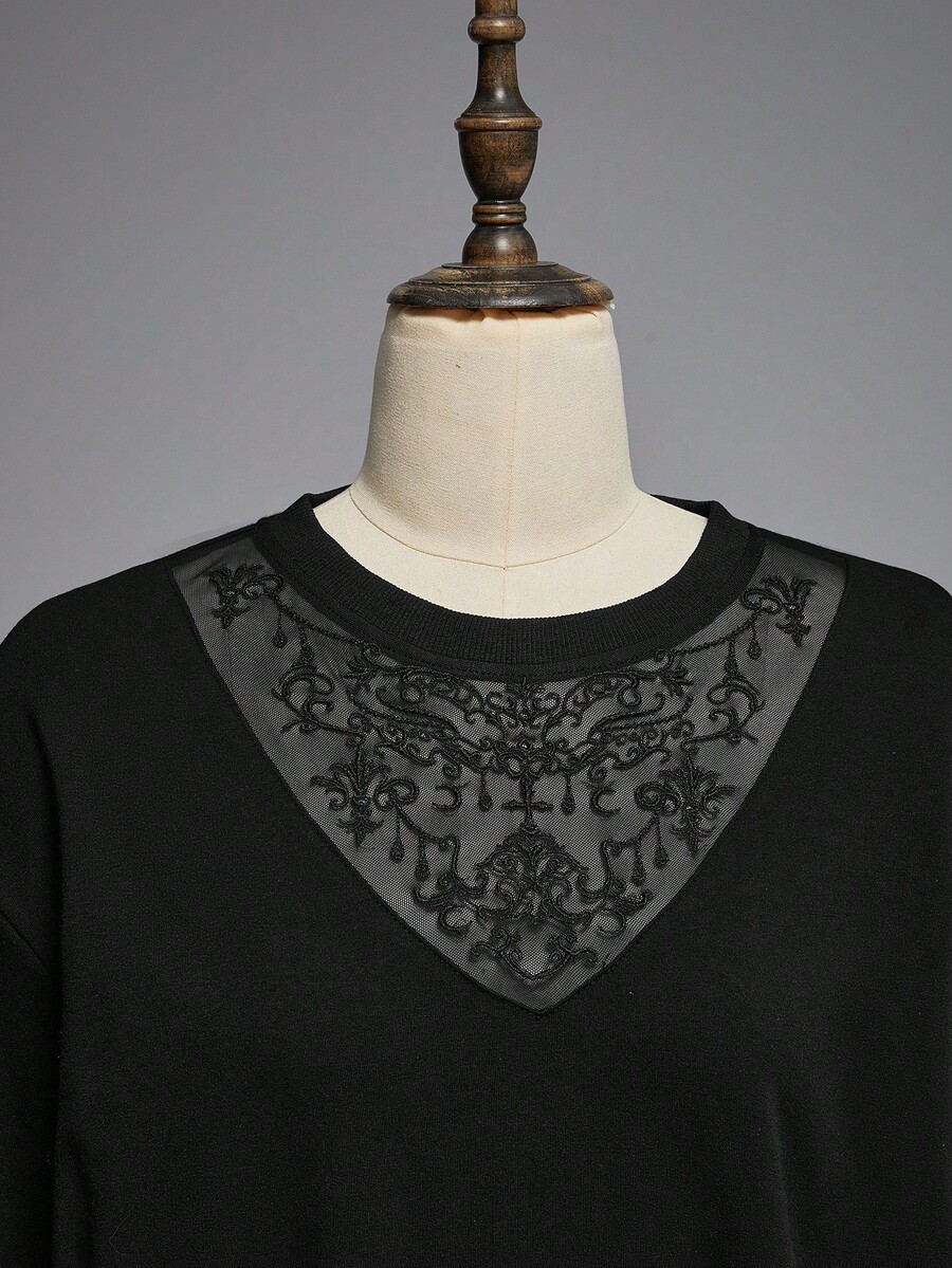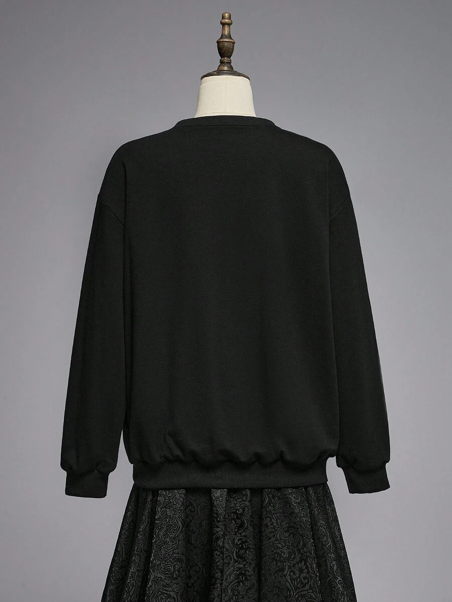 Grunge Punk Gothic Style Vine Embroidery Women Sweatshirt