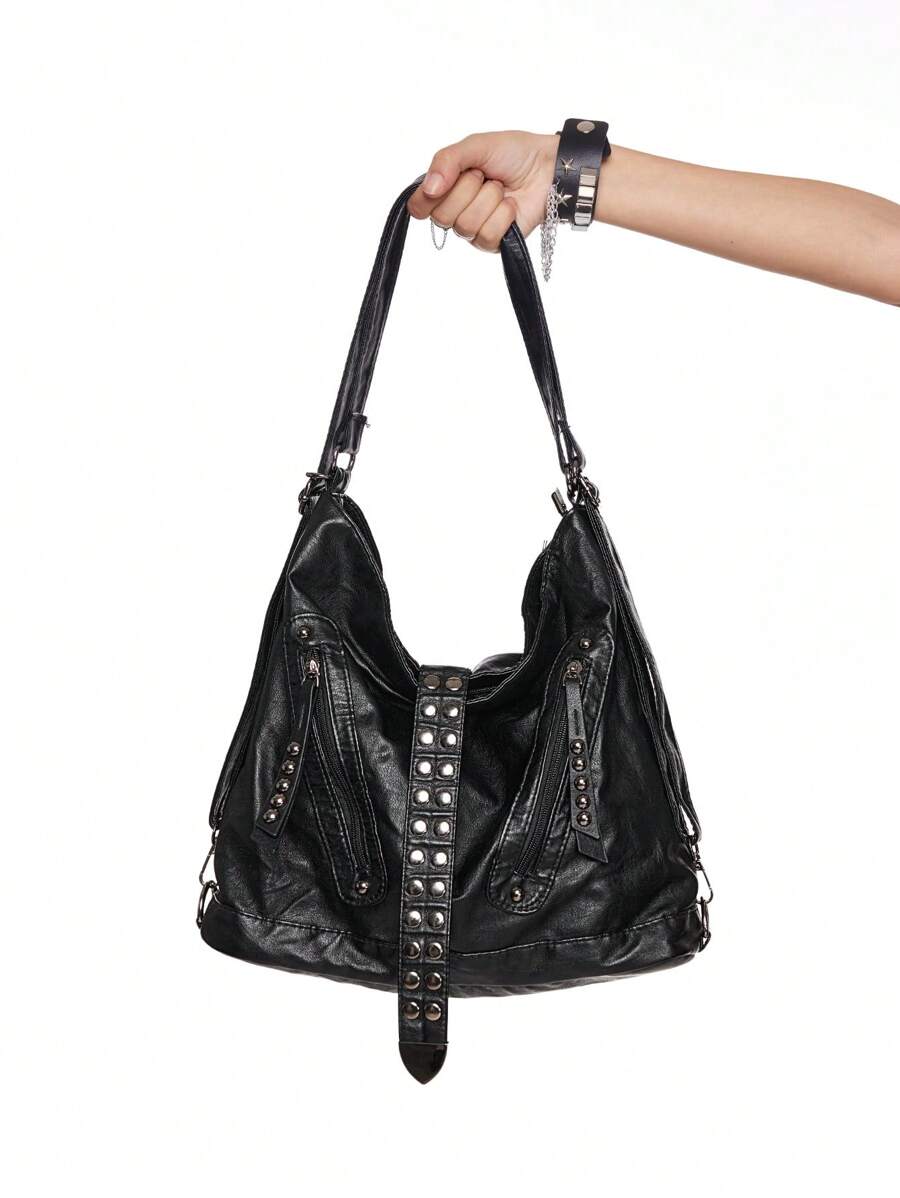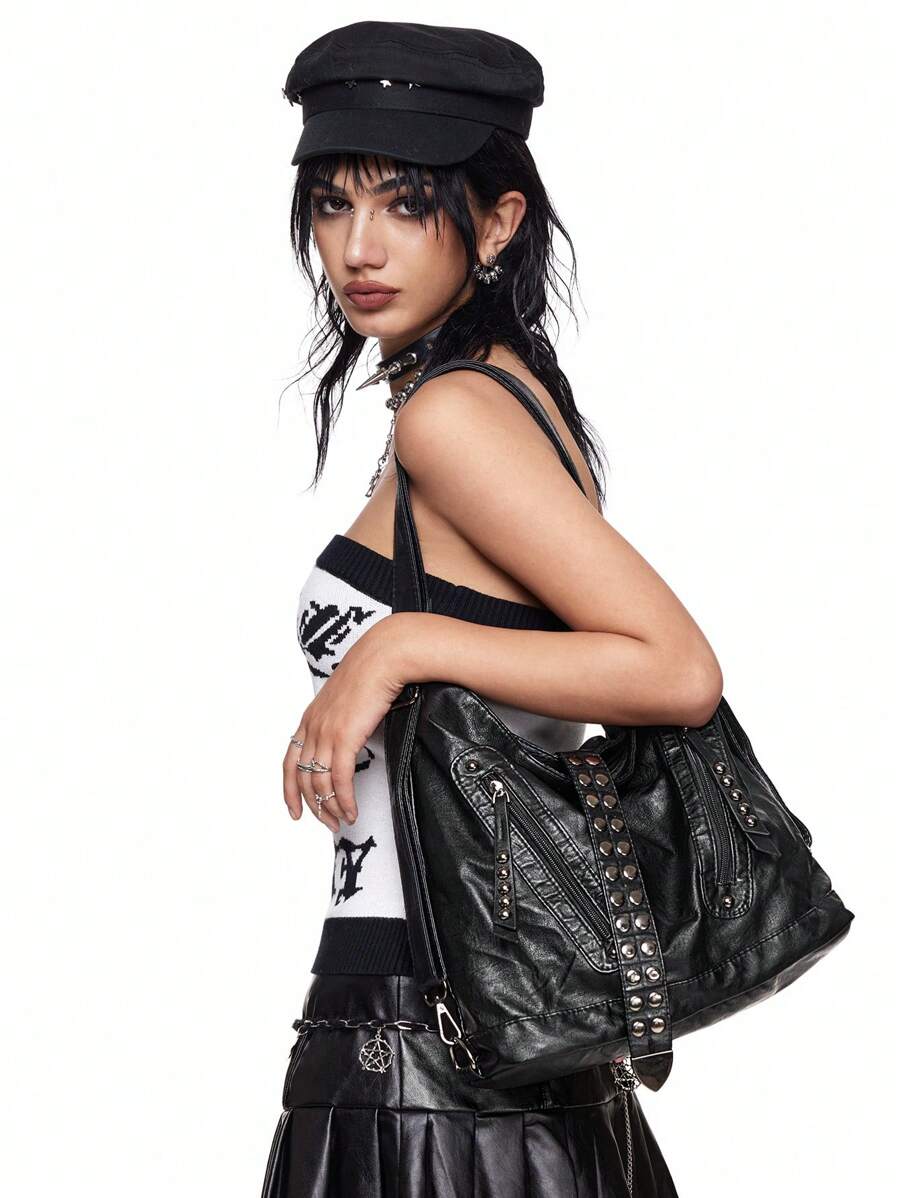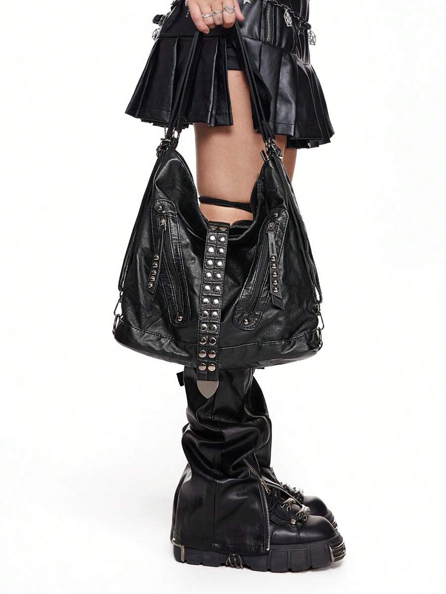 Grunge Punk Gothic Style Women's Large Capacity Rivet PU Rivet Handbag, Shoulder Bag & Backpack