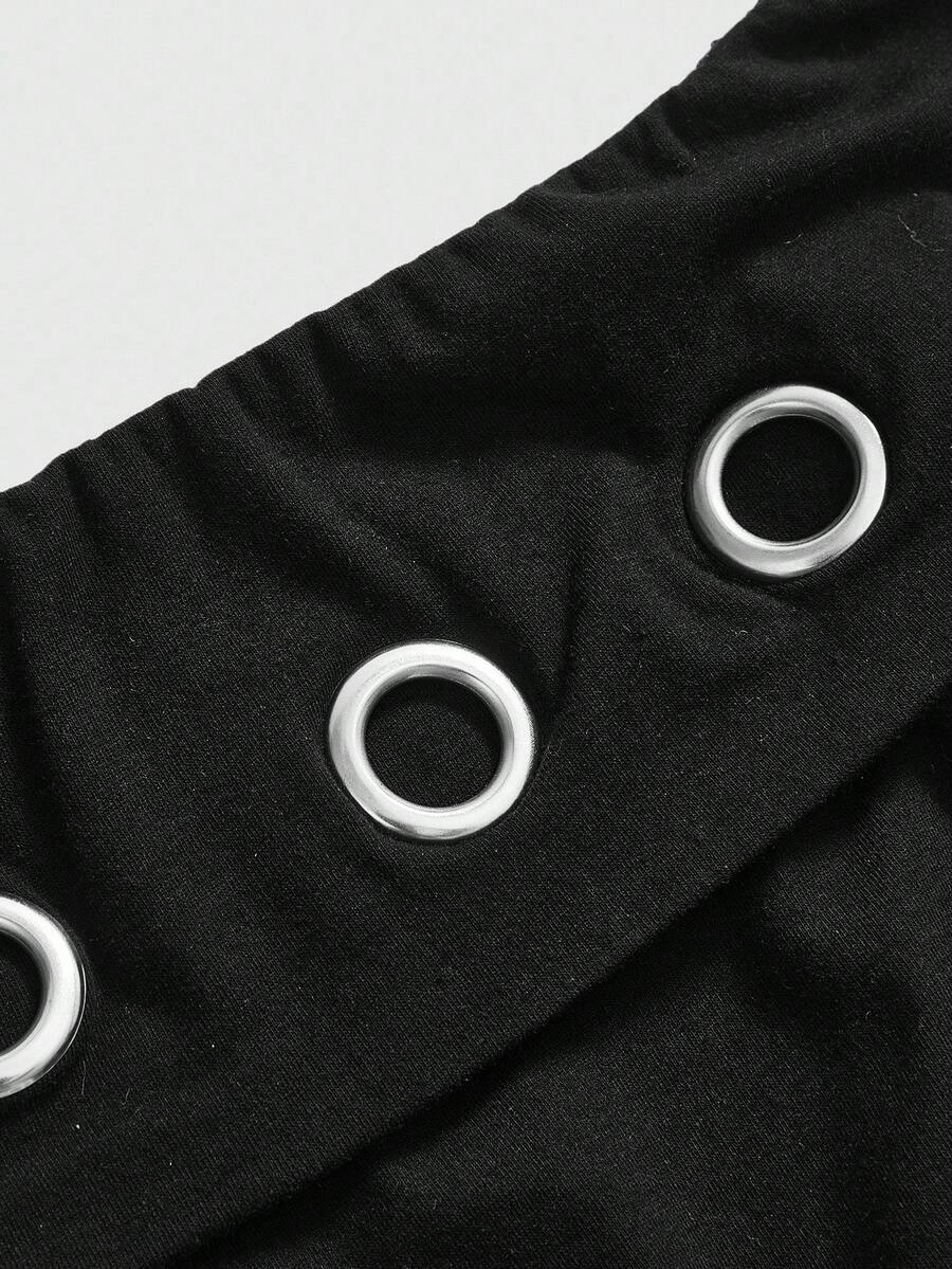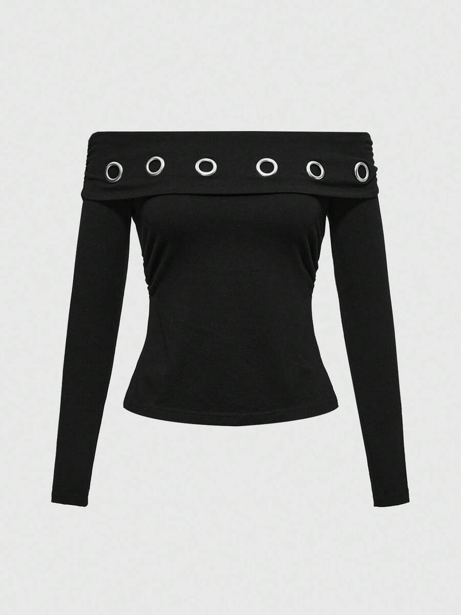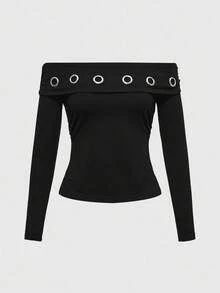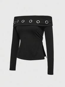 Grunge Punk Grunge Y2K Subculture Metal Graphic Asymmetric Hem Cutout Off Shoulder T-Shirt For Women