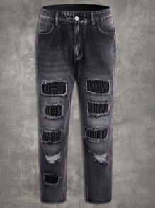 Grunge Punk Guys Ripped Frayed Cat Scratch Skinny Jeans
