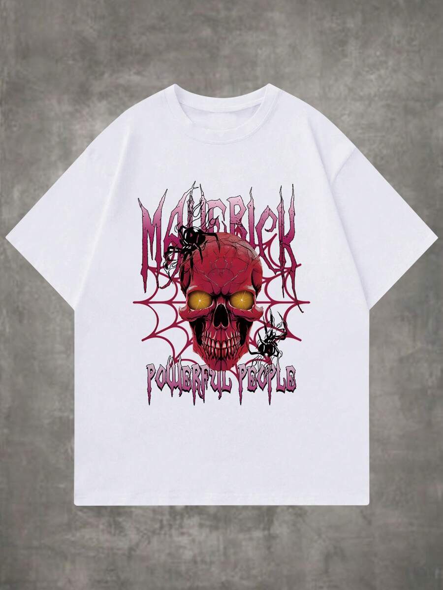 Grunge Punk Guys Skull & Spider Print Tee