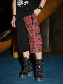 Grunge Punk Guys Tartan Flap Pocket Side Cargo Pants