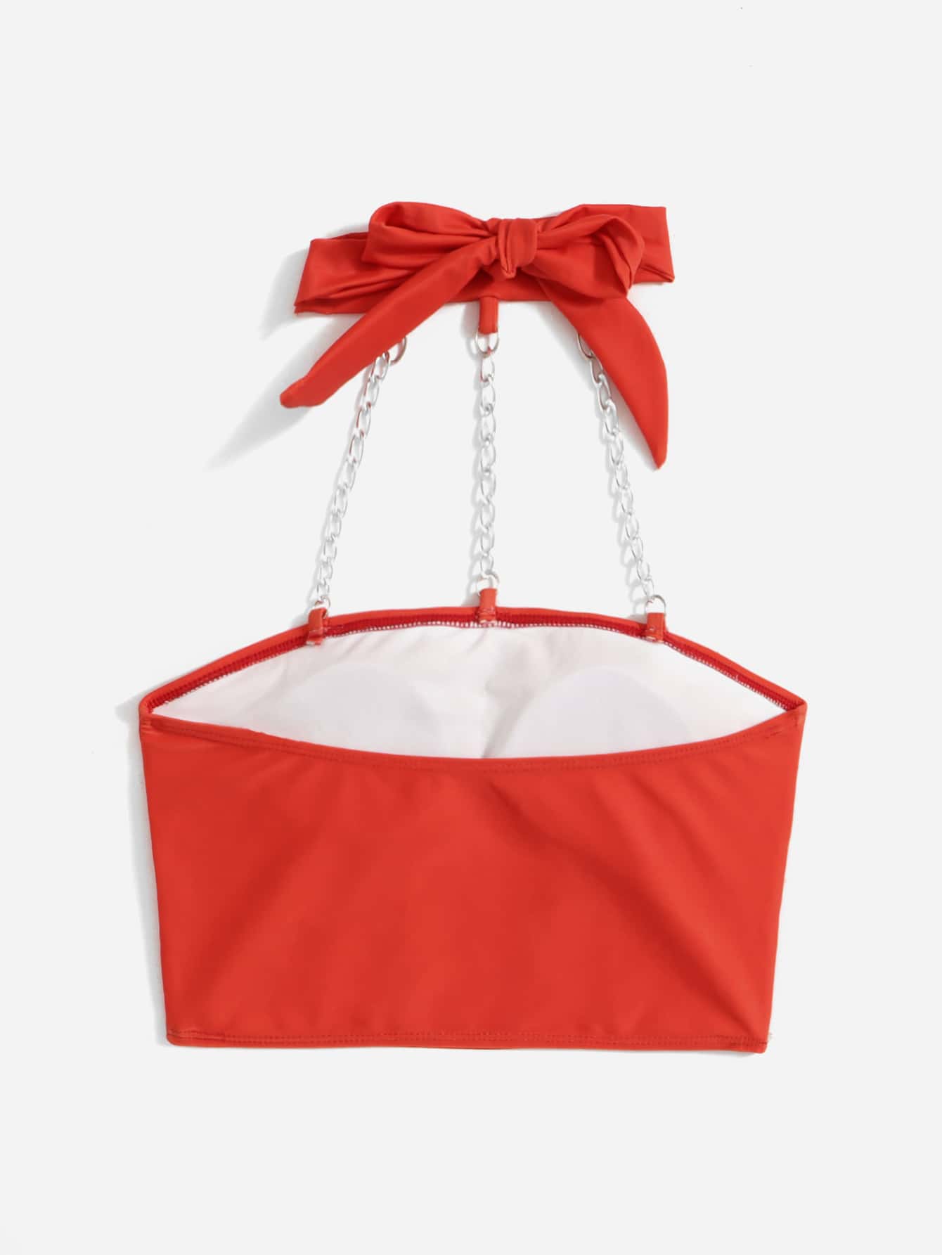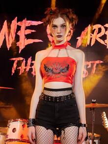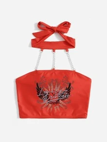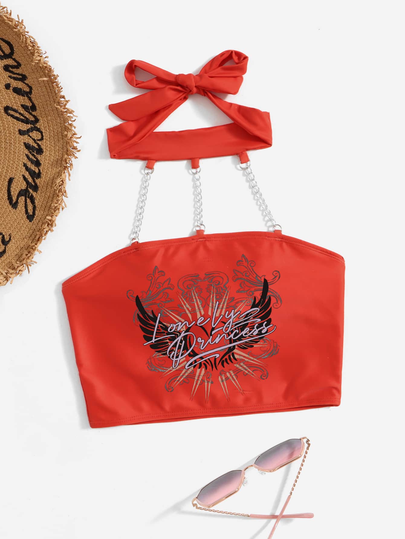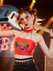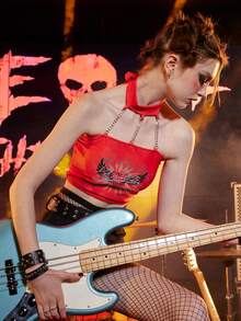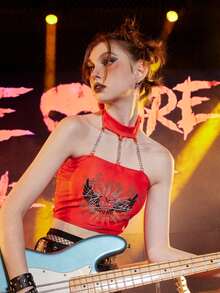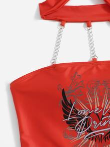Grunge Punk Kpop Letter Heart & Wings Graphic Chain Bikini Top