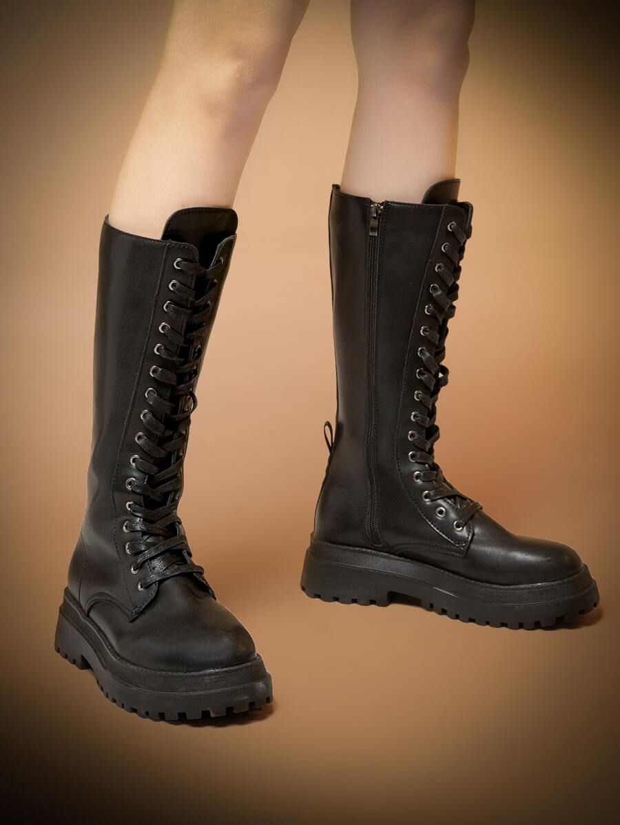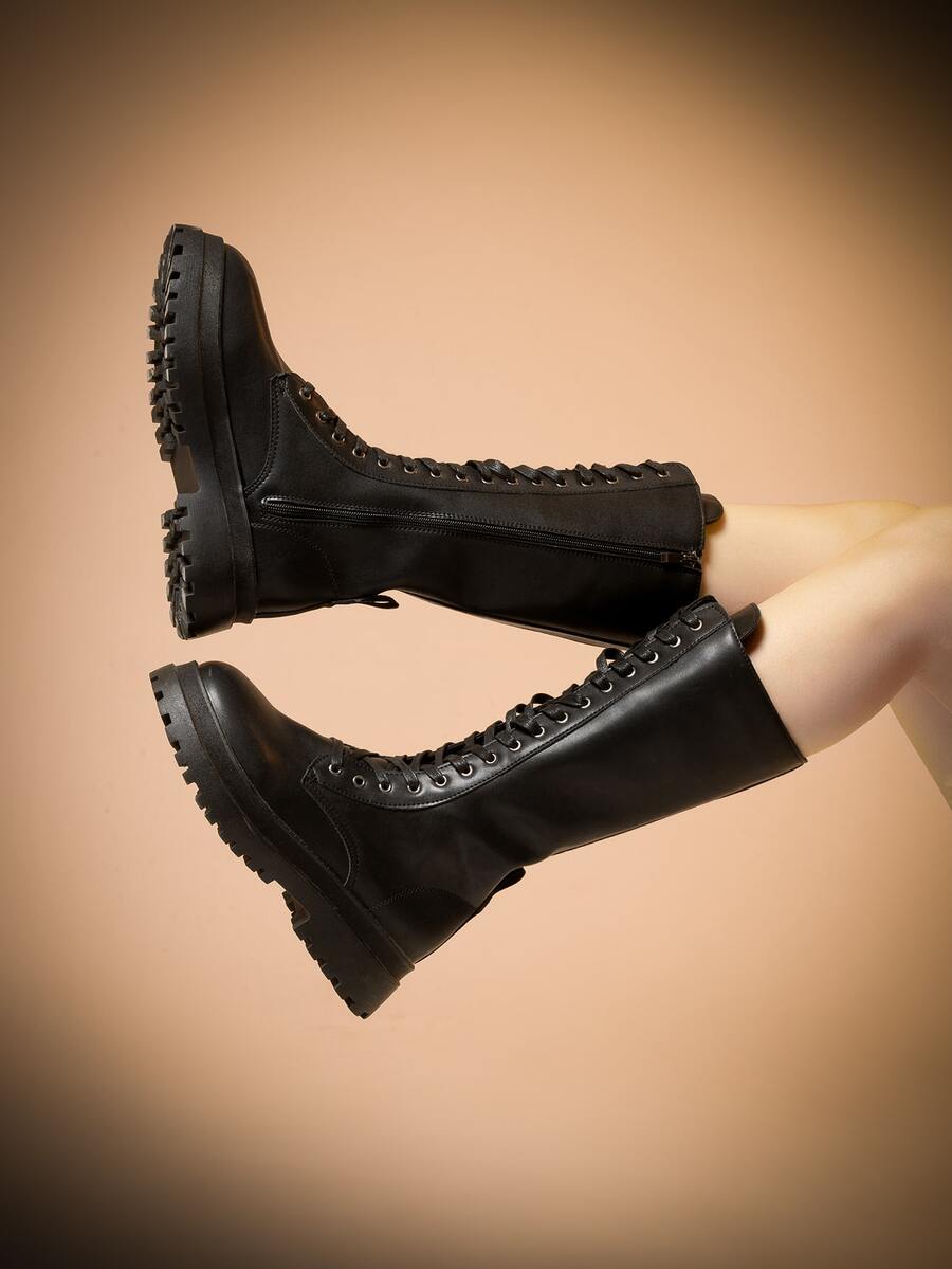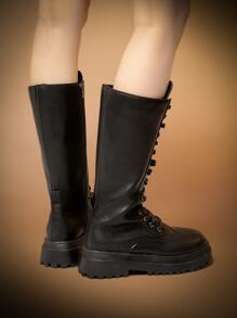 Grunge Punk Kpop Side Zip Lace Up Front Combat Boots
