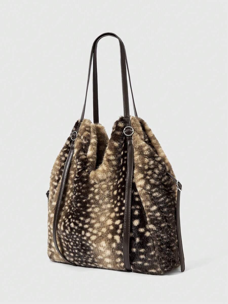 Grunge Punk Ladies, Women Shoulder Bag,Animal Print,Hobo Bag,Plush Bag,Faux Fur,Plush,Fur & Fuzz,Fashionable,Personalized,Versatile,Street,Sweet And Cool Girls,Hot Girls,Y2k,Punk,Autumn And Winter(Random Pattern)