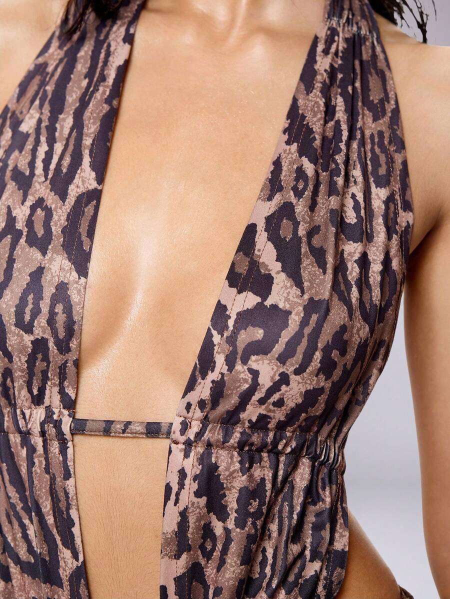 Grunge Punk Leopard Print Lace Patchwork Sexy Deep V Backless Mini Club Dress