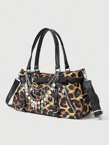 Grunge Punk Leopard Skull Decor Casual Fashion Personalized Large Capacity Women Crossbody Bag