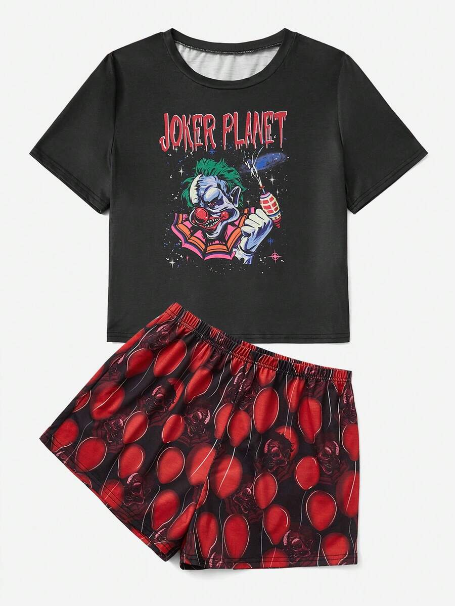 Grunge Punk Letter Clown Graphic PJ Set
