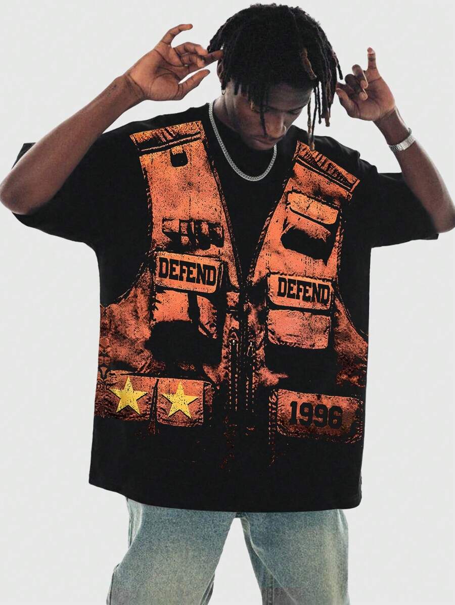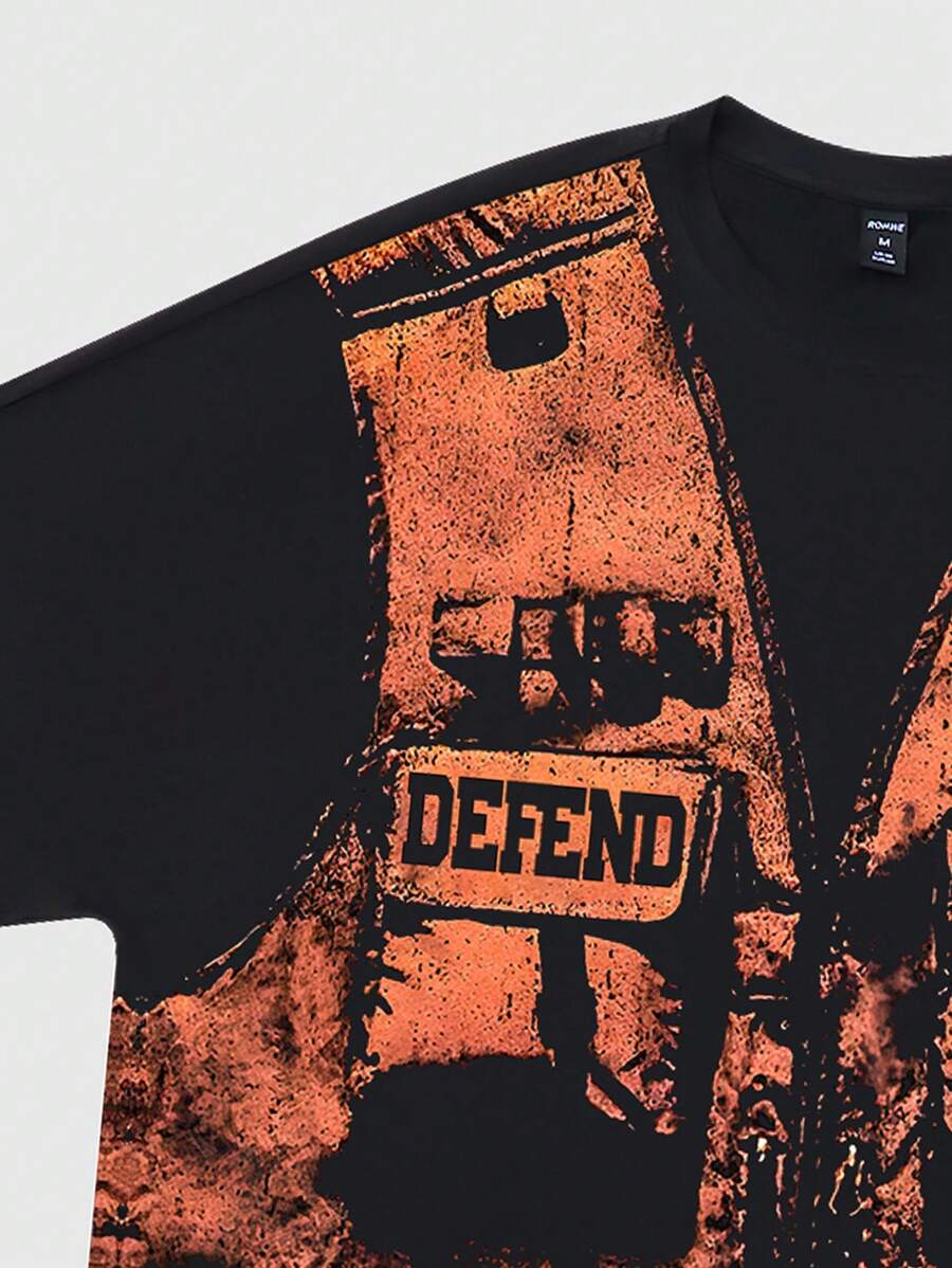 Grunge Punk Men Street Fashion Retro Print Loose Short Sleeve T-Shirt, Summer