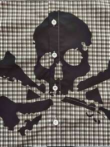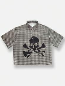 Goth Men's Casual Plaid Skull Print Shirt Halloween, Summer
