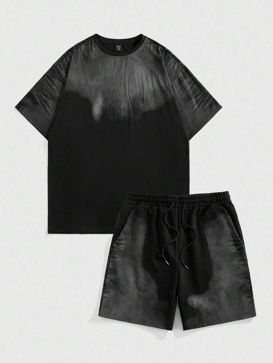 Grunge Punk Men's Color Block Round Neck Short Sleeve T-Shirt & Drawstring Waist Shorts Set