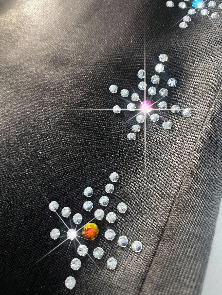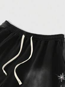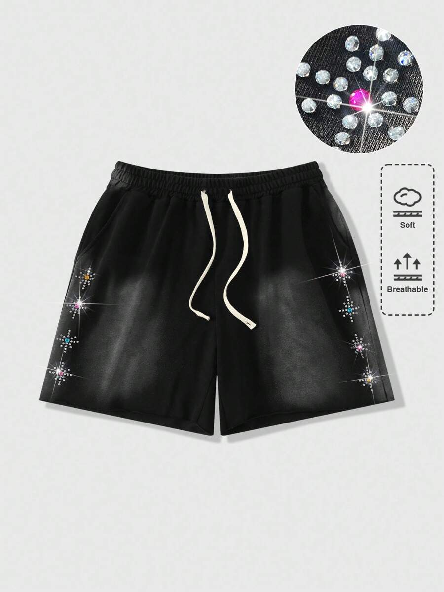 Grunge Punk Men's Drawstring Waist Pocketed Casual Rhinestone Decor Shorts