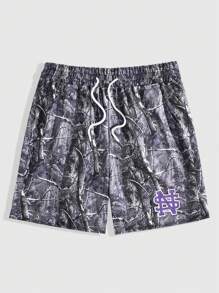 Grunge Punk Men's Front Tie Print Casual Shorts, Minimalist Daily Leisure