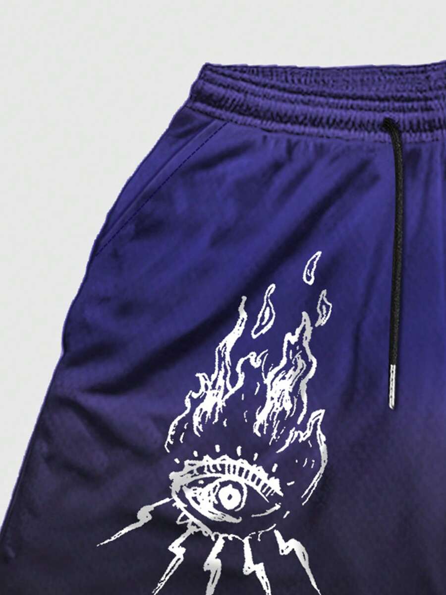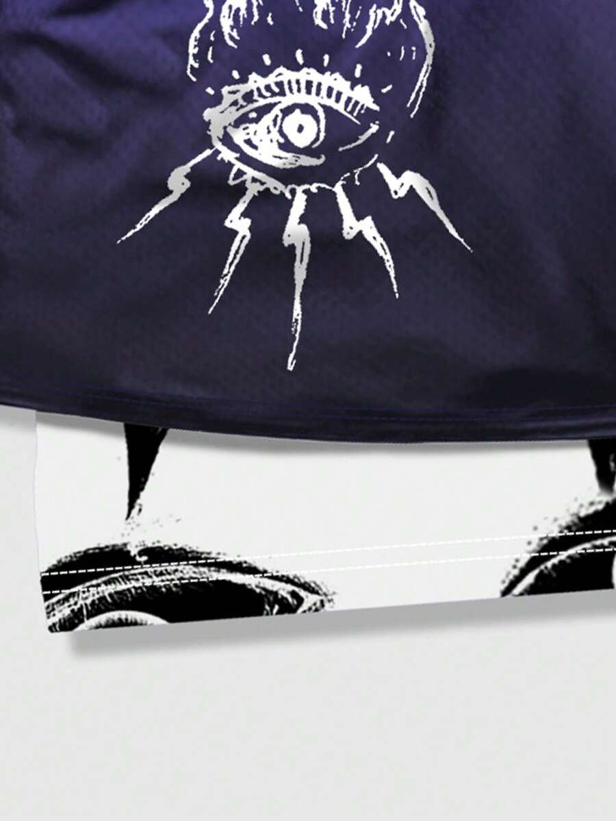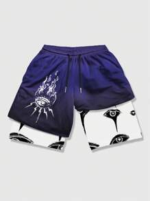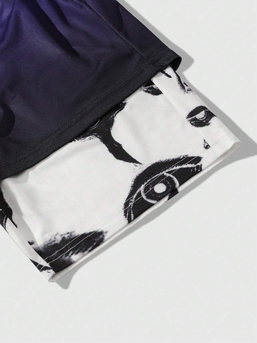 Grunge Punk Men's Gothic Print Breathable 2 In 1 Basketball Shorts, Daily Wear, Spring/Summer