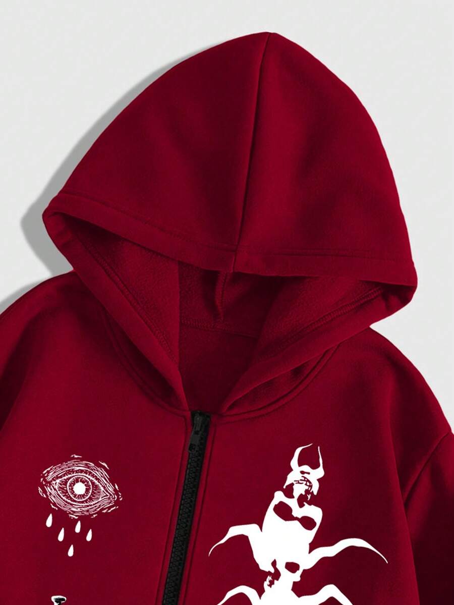 Grunge Punk Men's Gothic Print Button Sweatshirt Sweatshirt