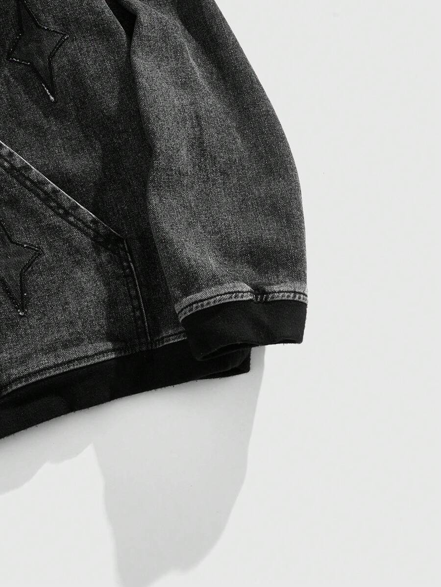 Grunge Punk Men's Grunge Long Sleeve Letter Pocket Casual Hooded Denim Jacket