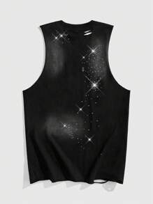 Grunge Punk Men's Grunge Rhinestone Embellished Round Neck Washed Casual Tank Top