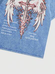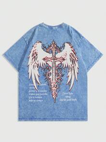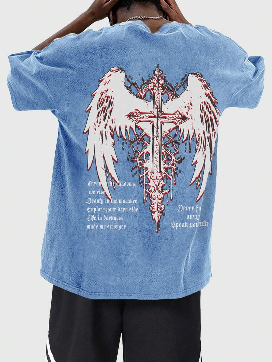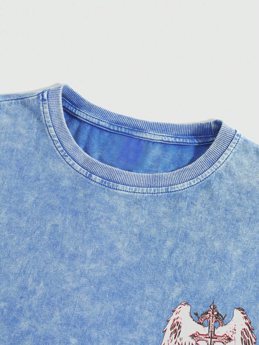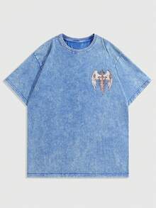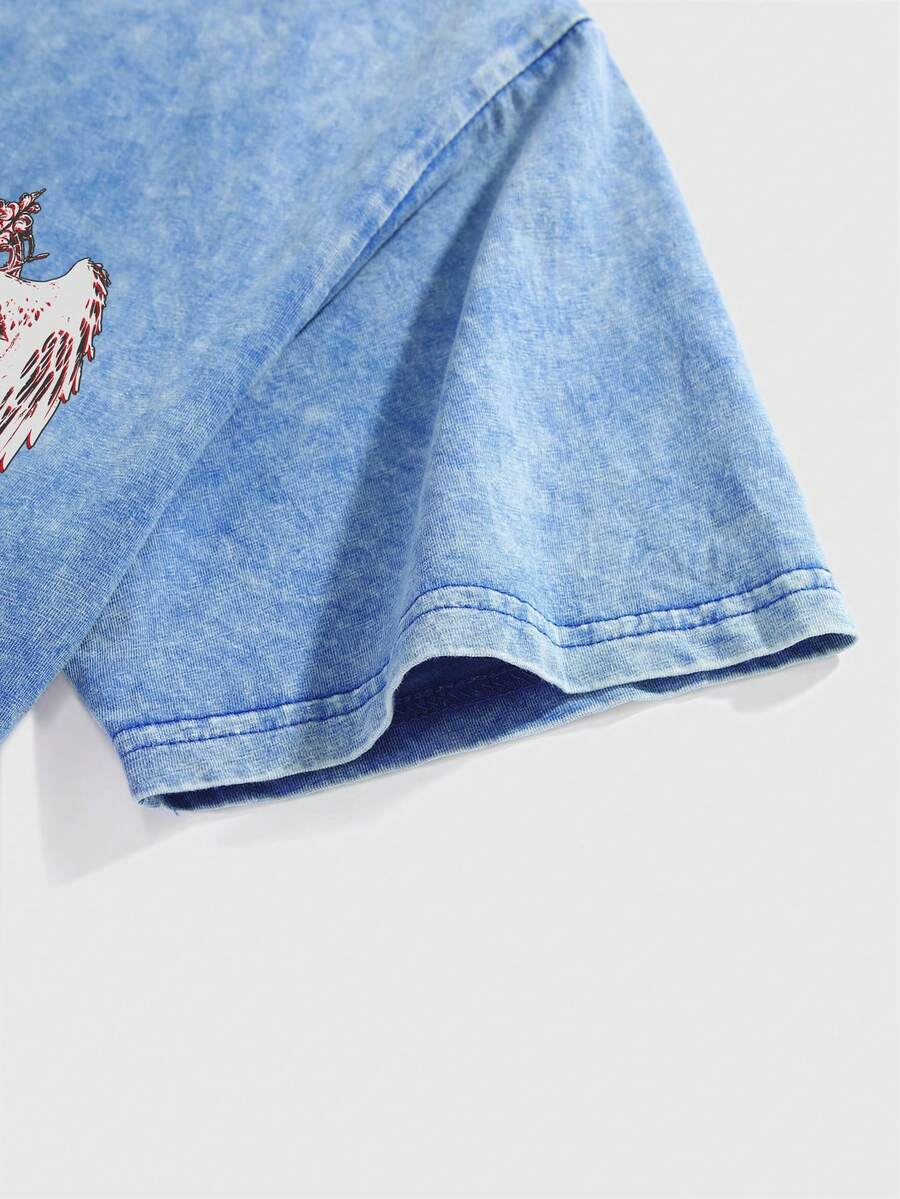 Grunge Punk Men's High Street Vintage Bleached Distressed Crew Neck T-Shirt, Casual Daily Wear Spring Summer Season,Graphic Tee