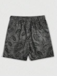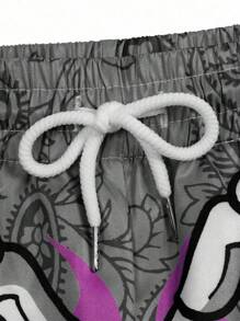 Grunge Punk Men's Letter & Skeleton Hand Print Drawstring Waist Casual Shorts, Halloween