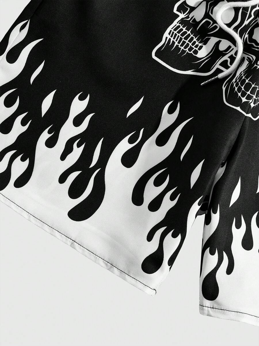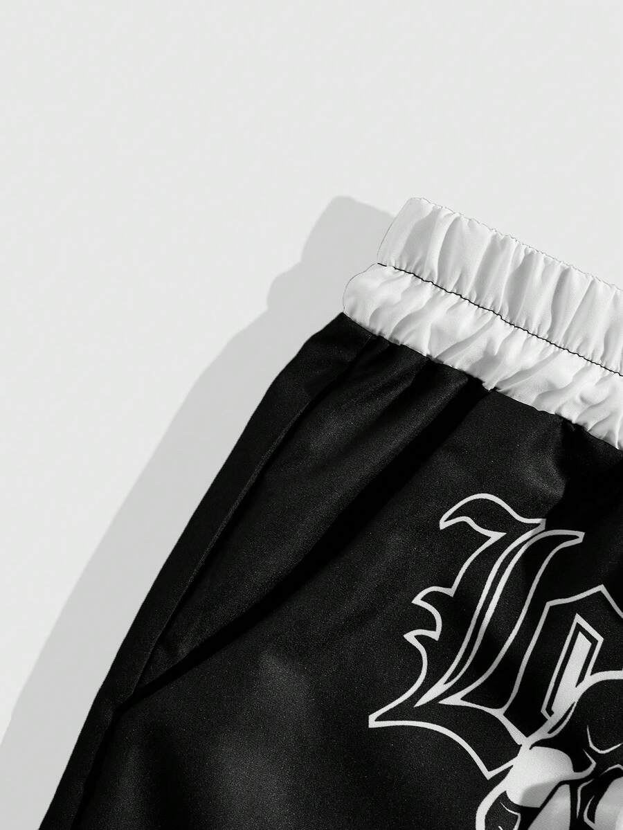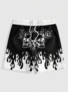 Grunge Punk Men's Letter & Skull Print Drawstring Waistband Shorts, School