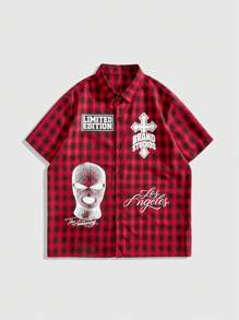 Street Life Men's Plaid Letter Print Short Sleeve Single-Breasted Casual Shirt