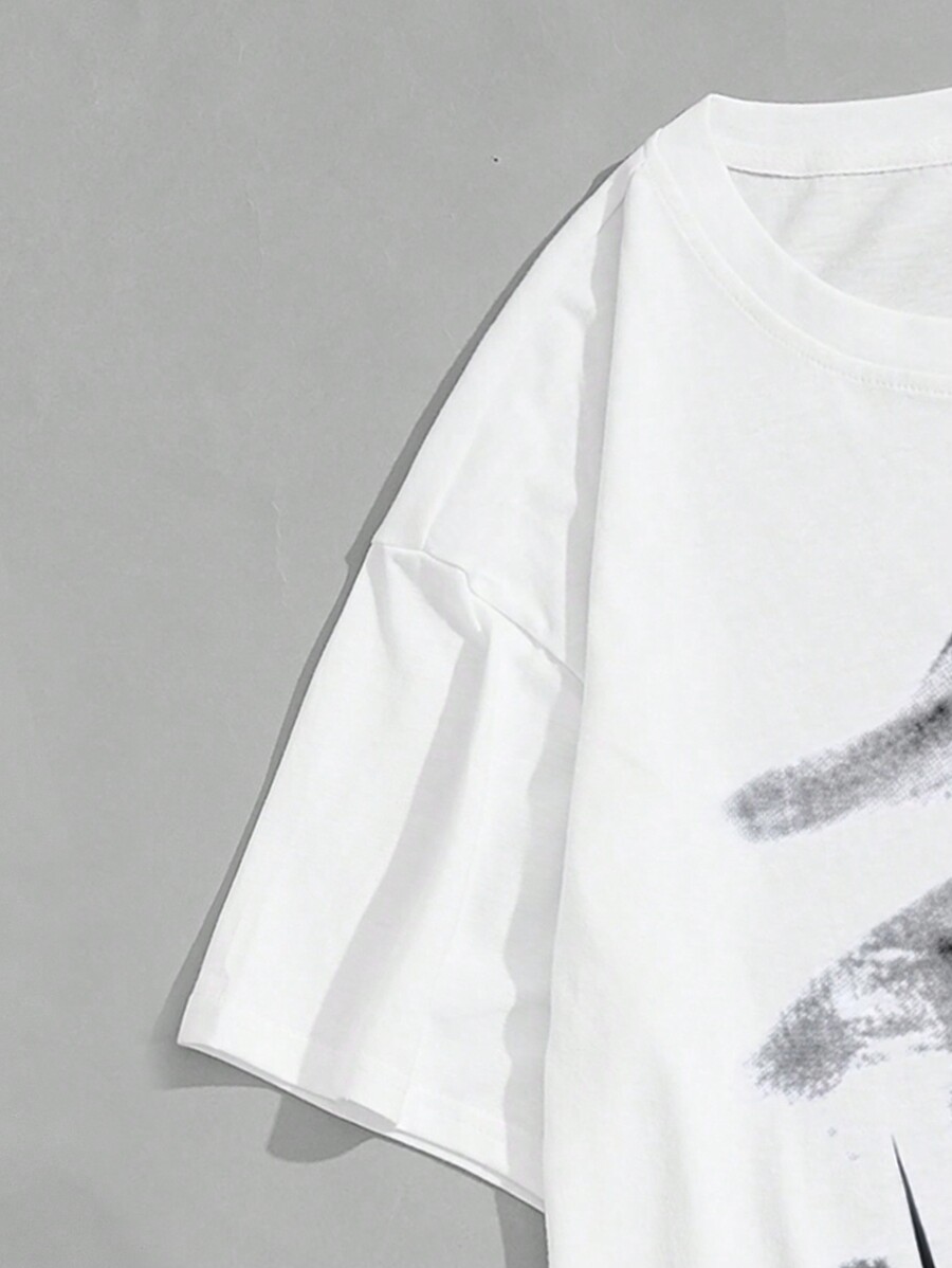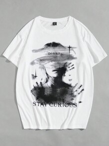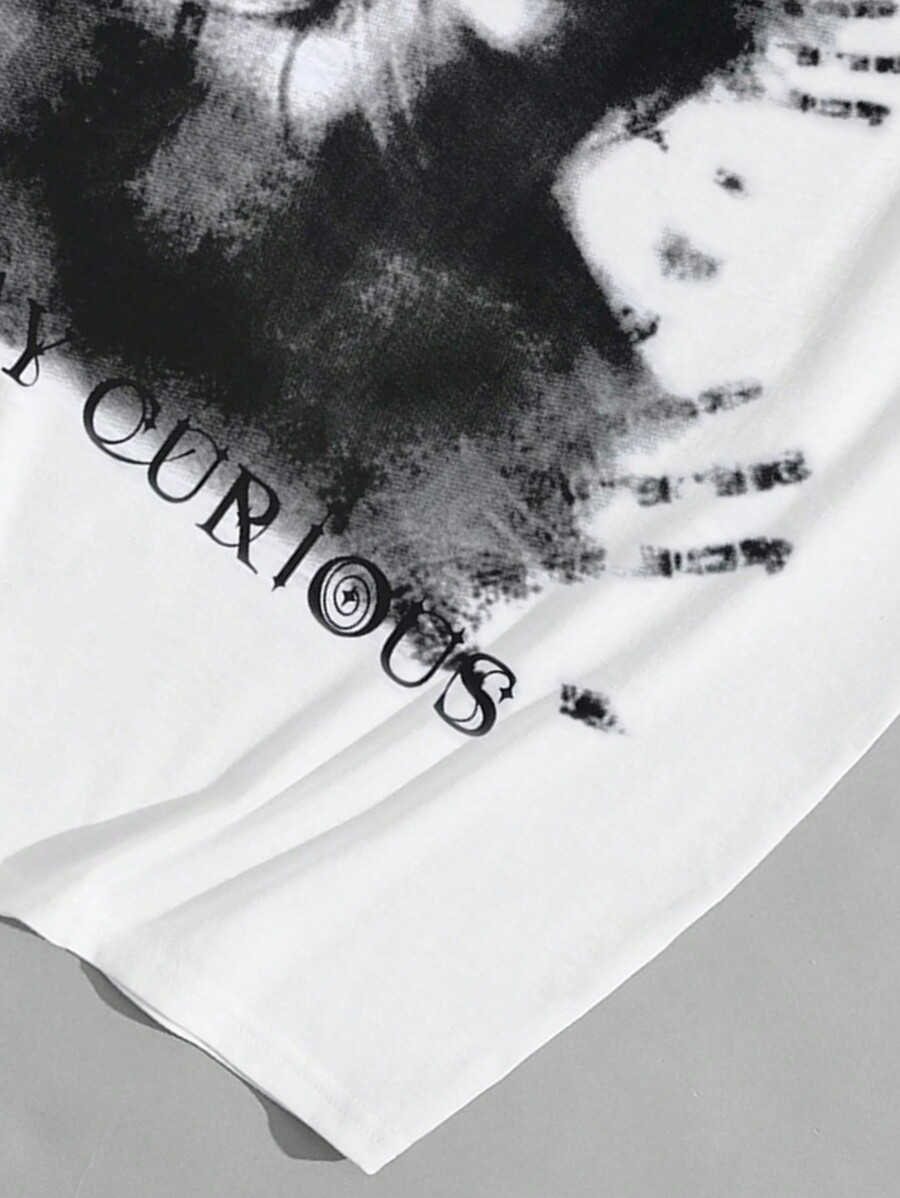 Grunge Punk Men's Portrait Printed Oversized T-Shirt, School