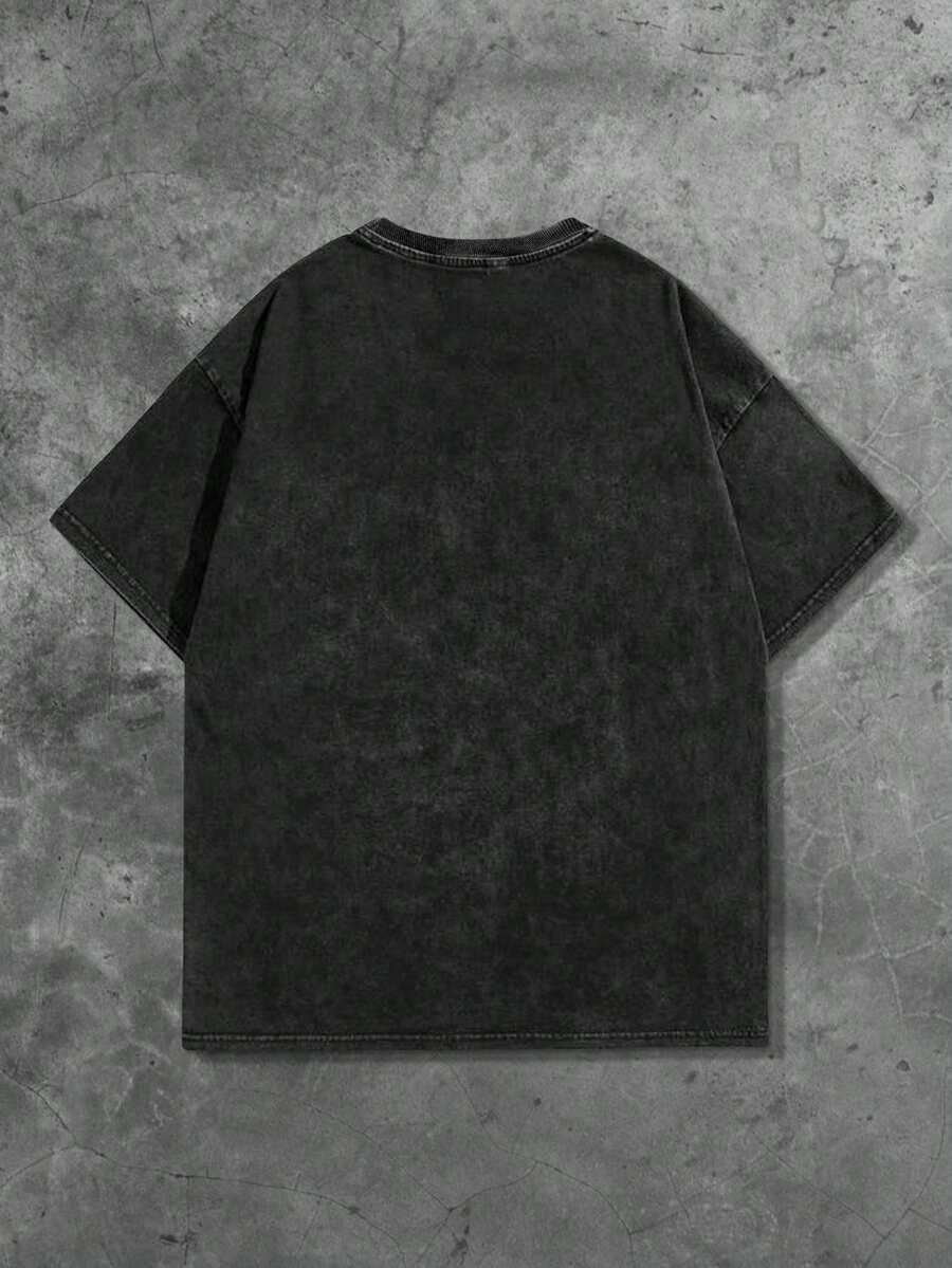 Grunge Punk Men's Portrait & Acid-Washed Short Sleeve T-Shirt, Suitable For Spring/Summer Everyday Wear, 2000s Style